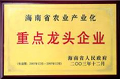 • · 2003年獲得“海南省農(nóng)業(yè)產(chǎn)業(yè)化重點龍頭企業(yè)”稱號;