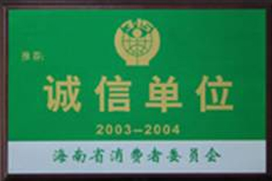• · 2006年被海南省消費者委員會評為“誠信單位”;
