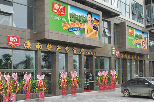 春光海南特產(chǎn)旗艦店坐落于三亞市河西路——黎客國(guó)際大酒店(準(zhǔn)五星級(jí))的一樓商鋪。由春光食品投資300多萬精心裝修成立,旗艦店面積約700平方米,是海南規(guī)模最大、最高檔的春光特產(chǎn)專營(yíng)店。店內(nèi)商品陳列錯(cuò)落有致,色彩搭配賞心悅目,除春光食品特產(chǎn)外,還設(shè)有水晶珠寶精品專柜、特產(chǎn)茶煙酒專柜、海產(chǎn)干貨專柜、速食飲料專柜、珍珠化妝品專柜等,并銷售海南花梨、牛角雕、貝藝工藝品、椰雕、島服泳裝、箱包、墨鏡等,經(jīng)營(yíng)品種多達(dá)十幾個(gè)門類,上千個(gè)品種,滿足了消費(fèi)者一站式購(gòu)物的需要。是純玩團(tuán)、會(huì)議接待等旅游休閑購(gòu)物的理想選擇。物品便利、寬敞、舒適、明亮的購(gòu)物通道和清楚的賣場(chǎng)標(biāo)示,快捷的電腦收銀、便利的大巴停車空間,亮潔的化妝間,為游客提供干凈舒適并具現(xiàn)代感的購(gòu)物環(huán)境。