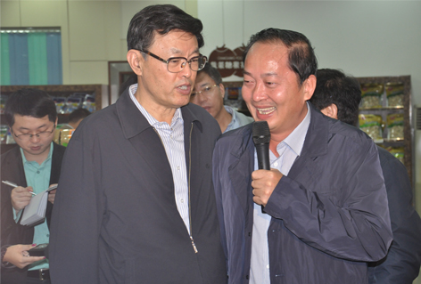 11月28日上午,冒著寒綿冬雨,踩著泥濘大地,省長蔣定之帶領(lǐng)參加全省品牌農(nóng)業(yè)發(fā)展推進(jìn)大會的代表考察了我司文昌廠區(qū),公司黃春光董事長等相關(guān)領(lǐng)導(dǎo)陪同介紹。